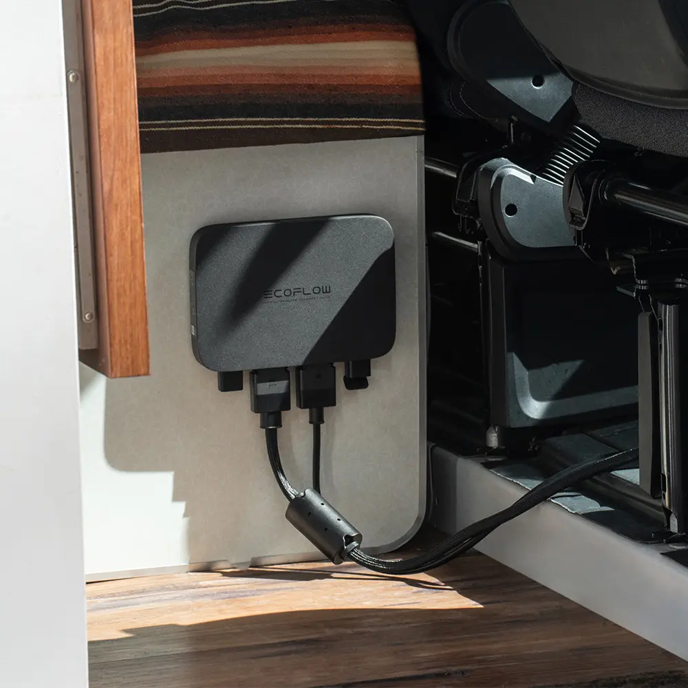Das EcoFlow 500 W Batterieladegerät ermöglicht das Aufladen tragbarer Powerstations direkt über die Lichtmaschine im Fahrzeug und nutzt dabei überschüssige Energie effizient aus. Es ist darauf ausgelegt, während der Fahrt eine Leistung von bis zu 500 W bereitzustellen und lädt so eine Kilowattstunde Kapazität in nur 2-1 Stunden, fünfmal schneller als herkömmliche Bordsteckdosen. Durch den integrierten DC‑DC‑Wandler wird die Energie konstanter und schonender übertragen, wodurch die Batterielebensdauer der Powerstation erhalten bleibt.