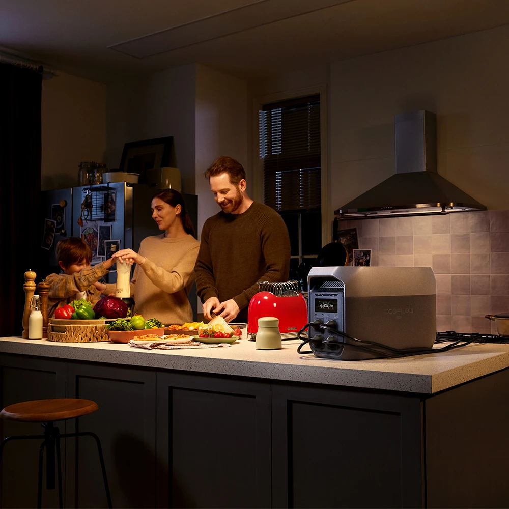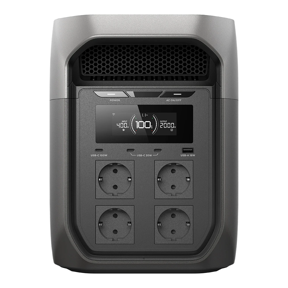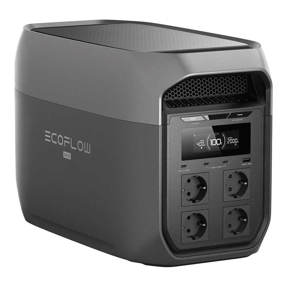Die DELTA 3 Max verfügt über eine Kapazität von 2048 Wh und stellt damit genügend Energiereserven für eine Vielzahl elektronischer Geräte bereit. Mit einer kontinuierlichen AC-Ausgangsleistung von 2400 W unterstützt die Powerstation den Betrieb von leistungsintensiven Verbrauchern und ermöglicht den Einsatz mehrerer Geräte gleichzeitig. Die integrierte X-Boost-Technologie erlaubt eine kurzzeitige Leistungssteigerung auf bis zu 3200 W, wodurch auch anspruchsvolle elektrische Lasten wie Werkzeug oder Küchengeräte zuverlässig versorgt werden können.