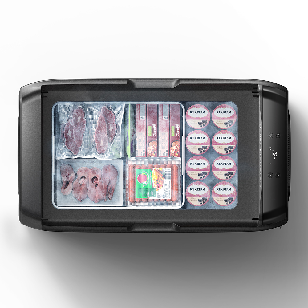 Die EcoFlow GLACIER Classic nutzt eine 53 Millimeter dicke Isolierung aus hochwertigem Schaum, die Temperaturverluste minimiert und Temperaturschwankungen reduziert. Ein hocheffizienter Kupferdrahtkompressor kühlt mit bis zu 40 Prozent geringerem Energieverbrauch im Vergleich zu herkömmlichen Modellen. Dadurch wird die Akkulaufzeit verlängert und gleichzeitig eine gleichmässige Kühlleistung garantiert.