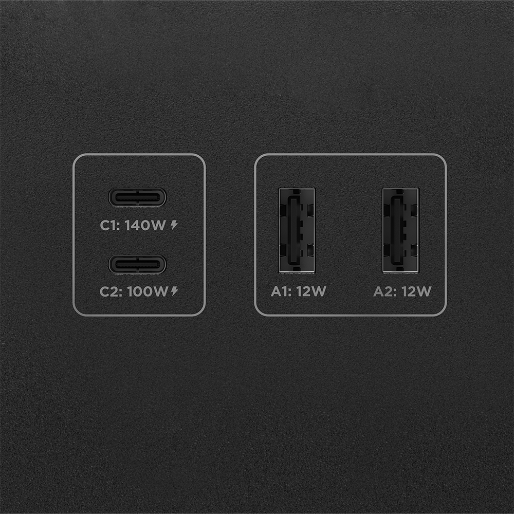 Zur Ausstattung gehören zwei USB-A-Ports mit jeweils 12 W sowie zwei USB-C-Ports mit bis zu 140 W beziehungsweise 100 W, die auch als Eingang dienen. Diese Schnittstellen ermöglichen schnelles Laden moderner Elektronik wie Laptops, Smartphones oder Tablets. Dadurch bleibt die TRAIL 200 DC vielseitig einsetzbar und deckt sowohl leichte als auch anspruchsvollere Stromanforderungen ab.
