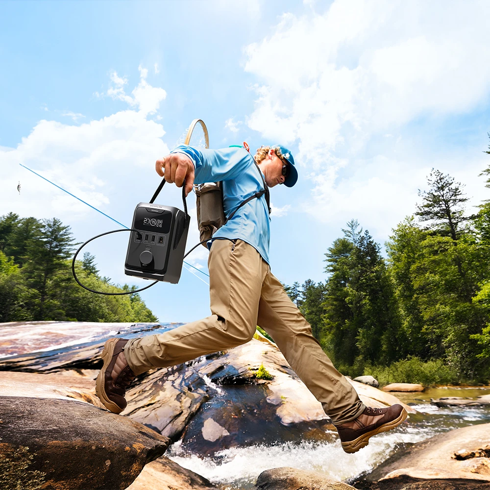 Mit einem Gewicht von etwa 2.58 kg und einer kompakten Bauform mit Abmessungen von 167 x 115 x 166 mm lässt sich die Powerstation bequem transportieren und in einem Rucksack verstauen. Die robuste Konstruktion basiert auf langlebigen LiFePO₄-Batteriezellen und wird durch ein integriertes Batteriemanagementsystem ergänzt, das die sichere Nutzung unterstützt. Die stabile Bauweise schützt das Gerät vor Stössen und typischen Belastungen, die bei Outdoor-Aktivitäten auftreten können, und sorgt für eine verlängerte Lebensdauer.