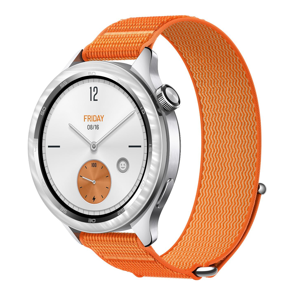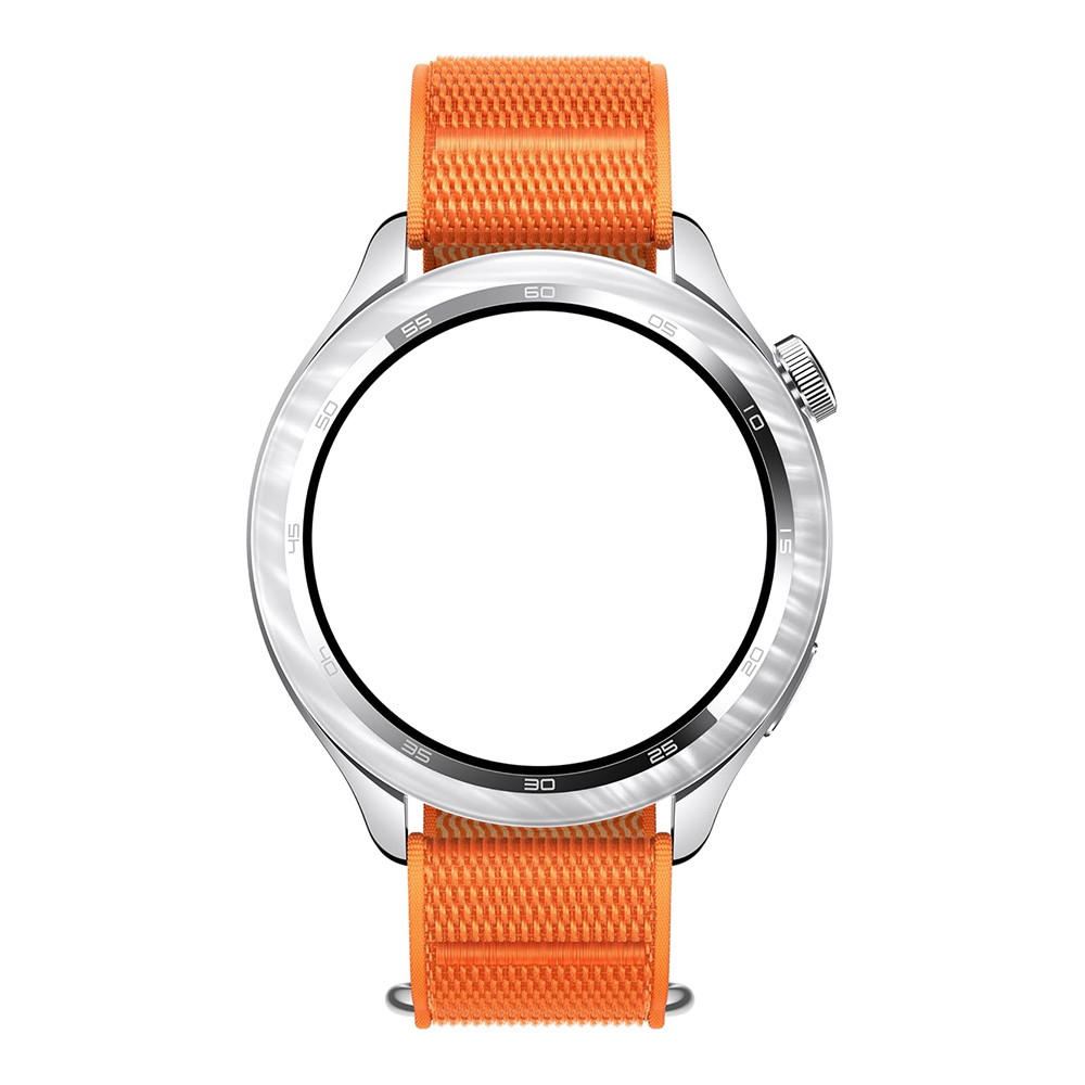 Die Lünette aus Edelstahl in festlichem Orange setzt einen markanten Akzent und verleiht der Smartwatch ein sportlich-elegantes Design. Das passende Nylonarmband sorgt für hohen Tragekomfort, ist besonders leicht und atmungsaktiv – ideal für den täglichen Gebrauch und Outdoor-Aktivitäten.