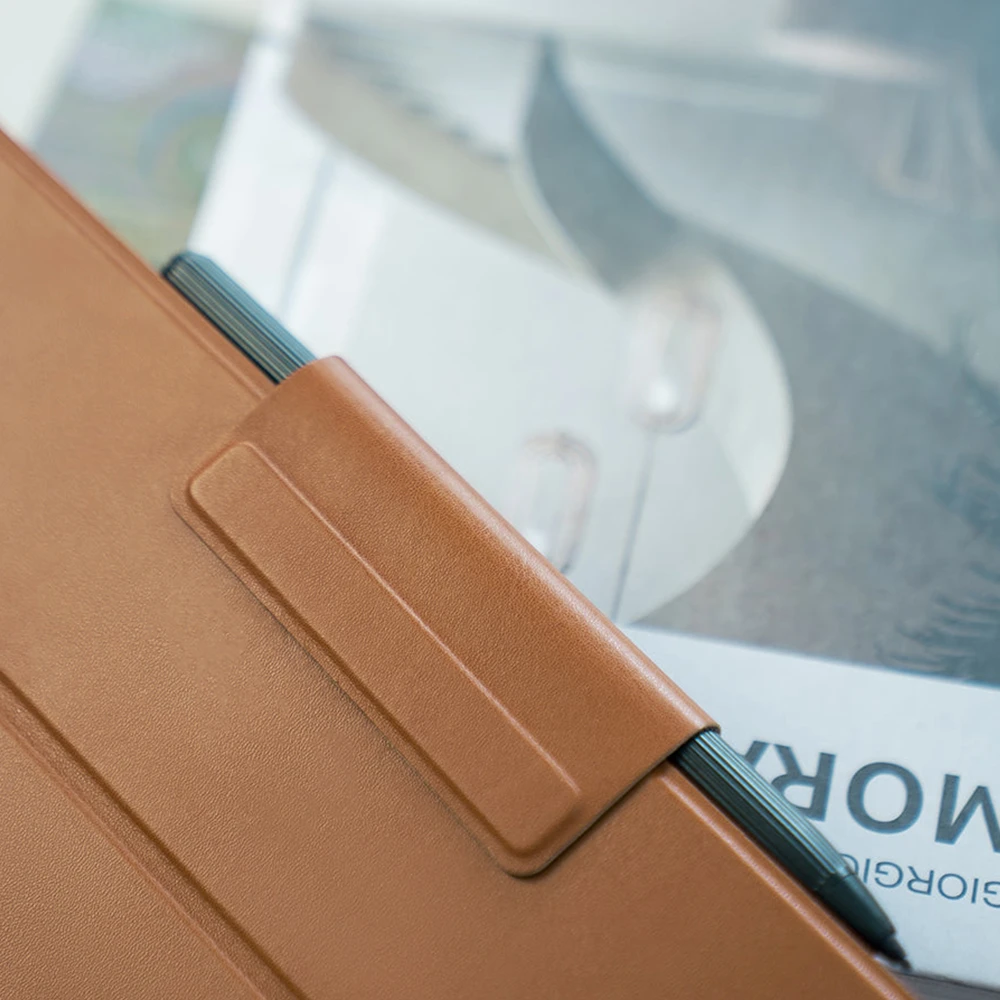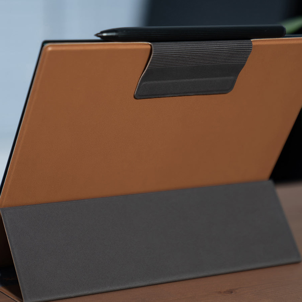 Dank des magnetischen Befestigungssystems sitzt das BOOX Note Air2 Plus sicher in der Hülle und bleibt auch bei Bewegung stabil. Die zusätzliche magnetische Lasche sichert nicht nur das Gerät, sondern hält auch den Stylus fest an seinem Platz. So ist das Tablet jederzeit bereit für den mobilen Einsatz – ob im Büro, im Café oder auf Reisen.