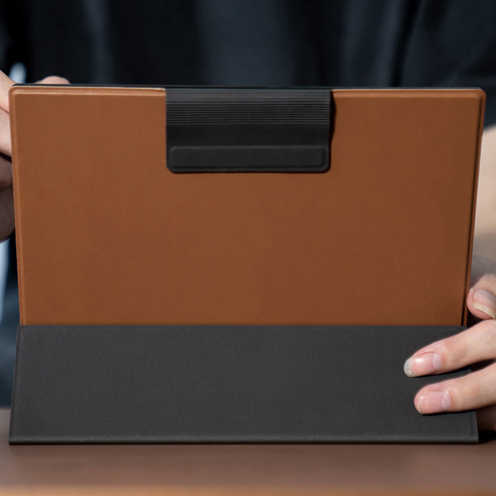 Die Kombination aus stilvollem Denim-Grau und warmem Karamell verleiht der Schutzhülle ein modernes, ansprechendes Erscheinungsbild. Das hochwertige Kunstleder fühlt sich angenehm an, ist strapazierfähig und verleiht dem Gerät eine edle Optik. Die Hülle ergänzt den minimalistischen Look des BOOX Note Air2 Plus perfekt und bietet eine harmonische Mischung aus Stil und Funktionalität.