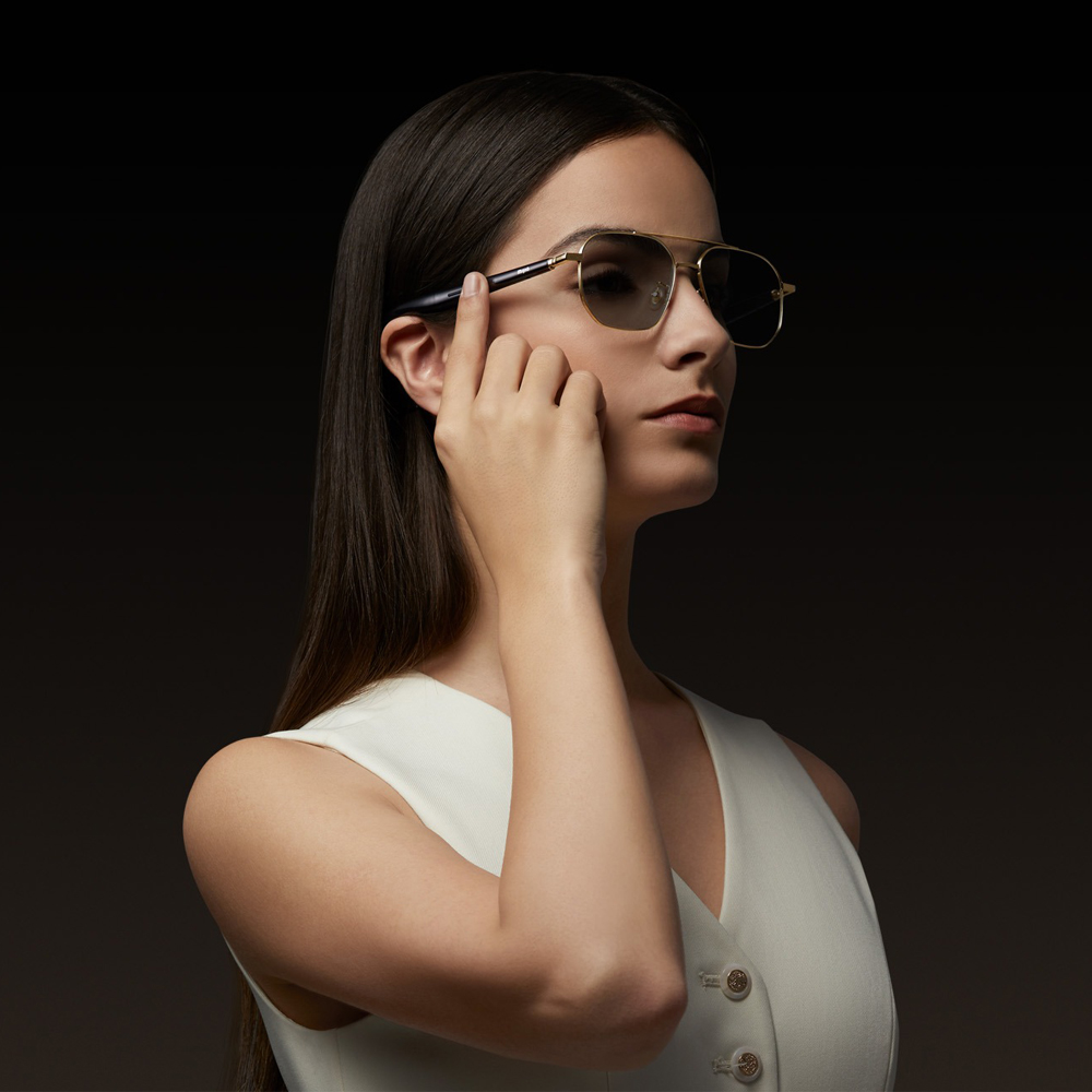 Die Konstruktion der Brille wurde gezielt auf ein möglichst schlankes Erscheinungsbild und hohen Tragekomfort ausgelegt. Besonders schmale Bügel mit einer Breite von nur etwa 5 mm sorgen dafür, dass sich die integrierte Audiotechnologie dezent in das klassische Brillendesign einfügt. Gleichzeitig trägt eine optimierte Gewichtsverteilung zu einem angenehmen Sitz bei, wodurch die Brille auch über längere Zeit komfortabel getragen werden kann. Je nach Modell kommen hochwertige Materialien wie Edelstahl oder Titan zum Einsatz, während widerstandsfähige Komponenten aus Polycarbonat zusätzliche Stabilität gewährleisten.