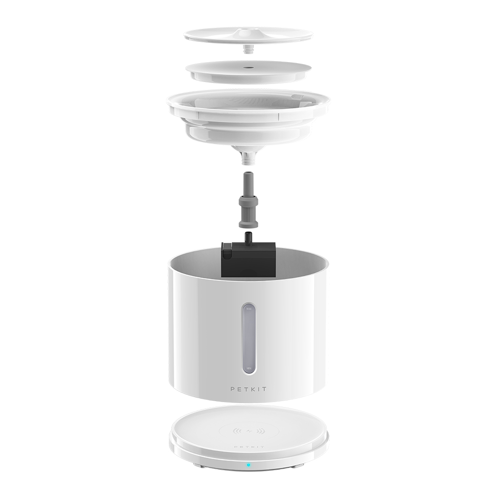 Dank des abnehmbaren Designs des Brunnenkörpers und des Sockels bleibt der Sockel trocken, wenn du Wasser nachfüllst oder den Brunnen reinigst. Dies gewährleistet eine saubere Umgebung für deine Haustiere.