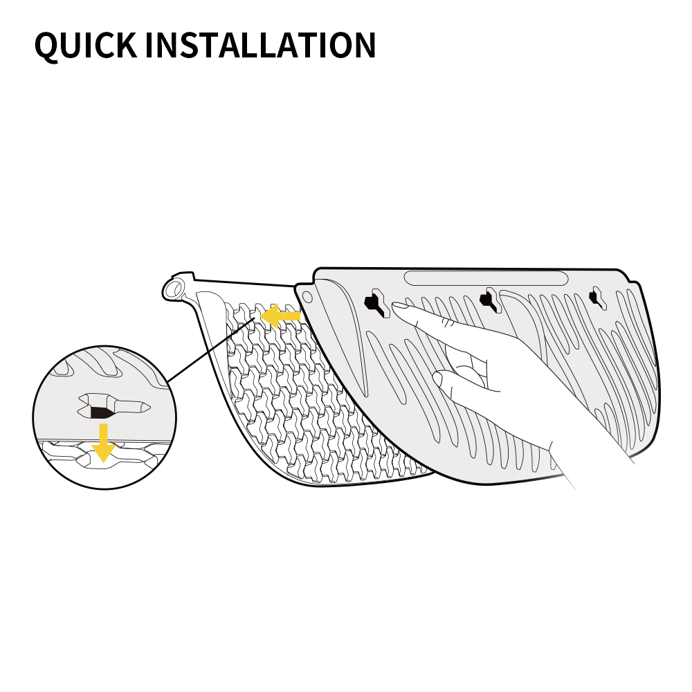 Die Montage ist denkbar einfach - die Knöpfe von links nach rechts in die Löcher des Siebes drücken. Dank des Tragegriffs lässt sich der Kaztzenstreu-Entferner leicht abnehmen und bequem handhaben. Dies garantiert einen einfachen und effizienten Einsatz.