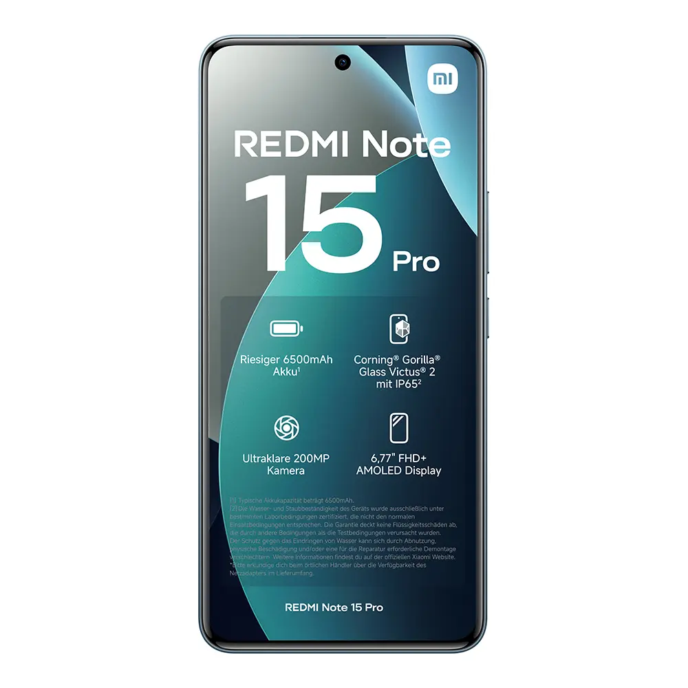 | Lieferumfang: | 1x Redmi Note 15 Pro, 1x USB-C-Kabel, 1x SIM-Auswurftool, 1x Schutzhülle, 1x Kurzanleitung |