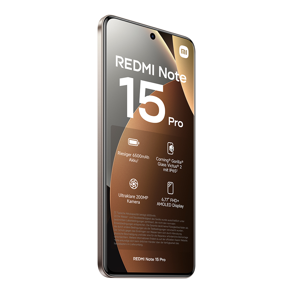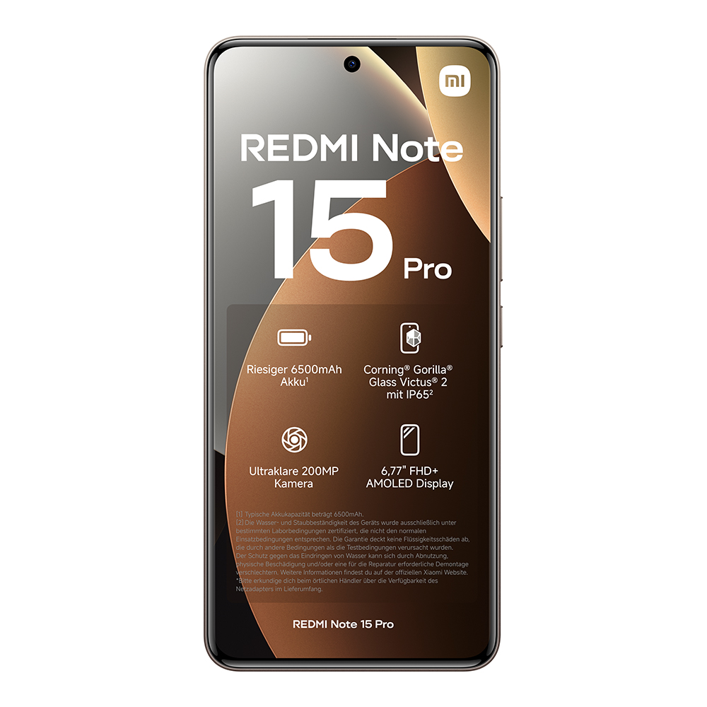 | Lieferumfang: | 1x Redmi Note 15 Pro, 1x USB-C-Kabel, 1x SIM-Auswurftool, 1x Schutzhülle, 1x Kurzanleitung |