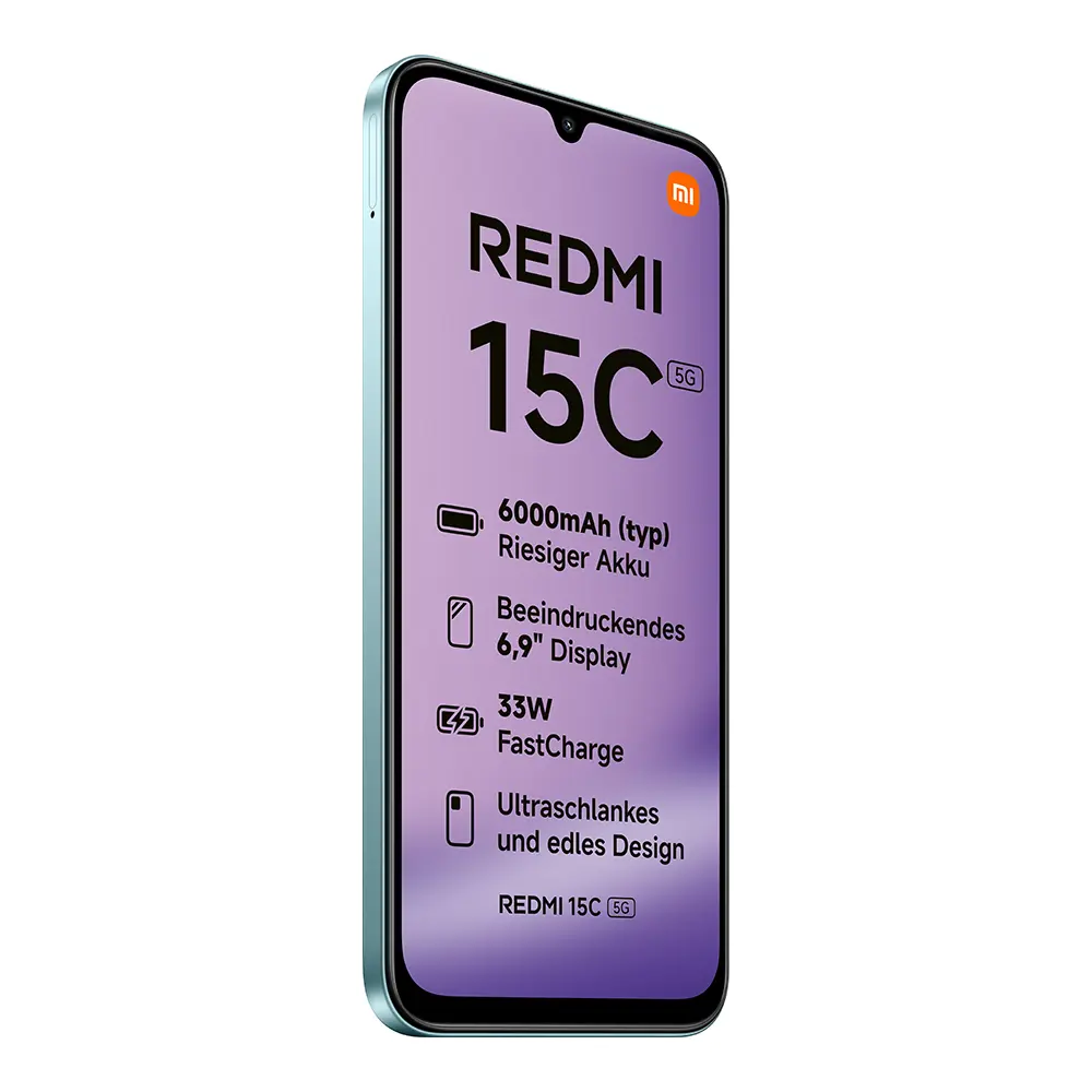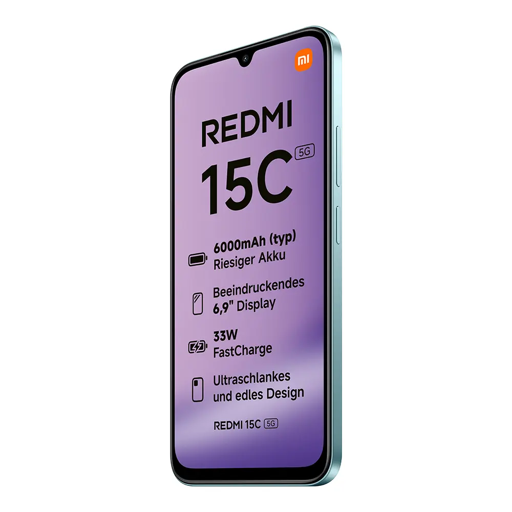 Das Redmi 15C 5G in Mint Green kombiniert frisches Design mit starker Leistung und bietet eine Ausstattung, die optimal auf die Anforderungen des mobilen Alltags zugeschnitten ist. Mit seinem hochauflösenden Display, der flüssigen Performance, der KI-gestützten Kameratechnologie und dem leistungsstarken Akku vereint es Funktionalität und Stil in einem ausgewogenen Gesamtpaket. Dieses Modell eignet sich ideal für alle, die ein modernes Smartphone mit natürlicher Ausstrahlung und vielseitigen Einsatzmöglichkeiten suchen.