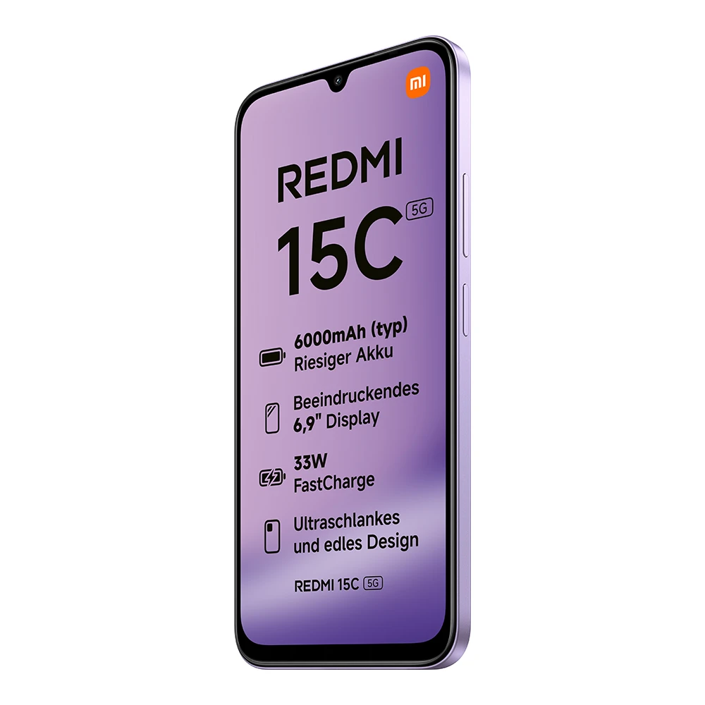 Das Redmi 15C 5G in Dusk Purple verbindet ein markantes Design mit moderner Leistung und einer Ausstattung, die den Anforderungen des mobilen Alltags gerecht wird. Mit seinem hochauflösenden Display, der starken Performance, der KI-gestützten Kameratechnologie und dem ausdauernden Akku setzt es auf Vielseitigkeit und Eleganz zugleich. Dieses Modell vereint Funktionalität und Stil zu einem leistungsstarken Gesamtpaket für Nutzerinnen und Nutzer, die Wert auf Ästhetik und technische Raffinesse legen.