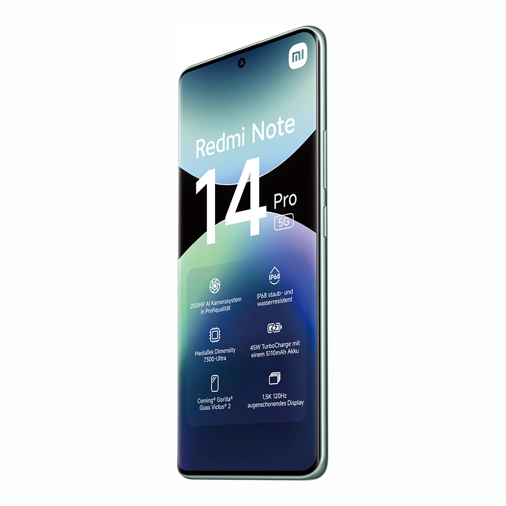 Das Redmi Note 14 Pro 5G vereint herausragende Kamerafunktionen, elegante Designsprache und leistungsstarke Technologie. Dieses Smartphone bietet die perfekte Kombination aus Innovation, Komfort und Zuverlässigkeit – für Anwender, die keine Kompromisse eingehen möchten.