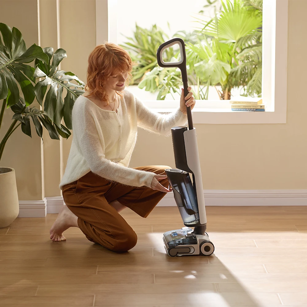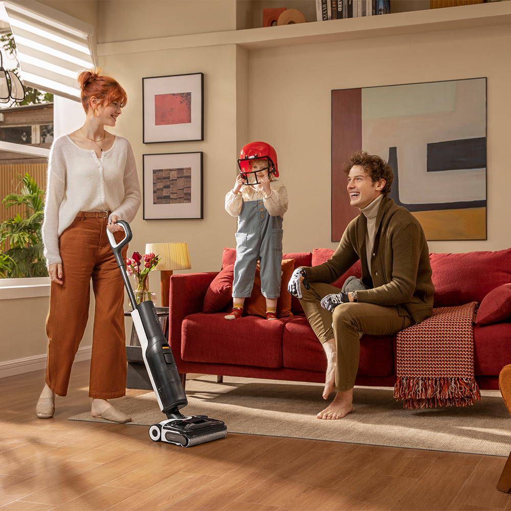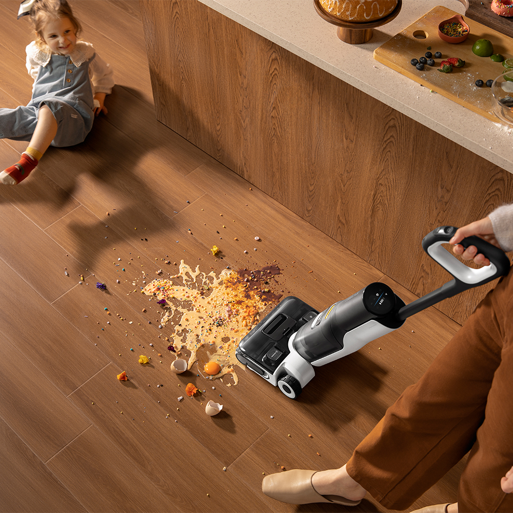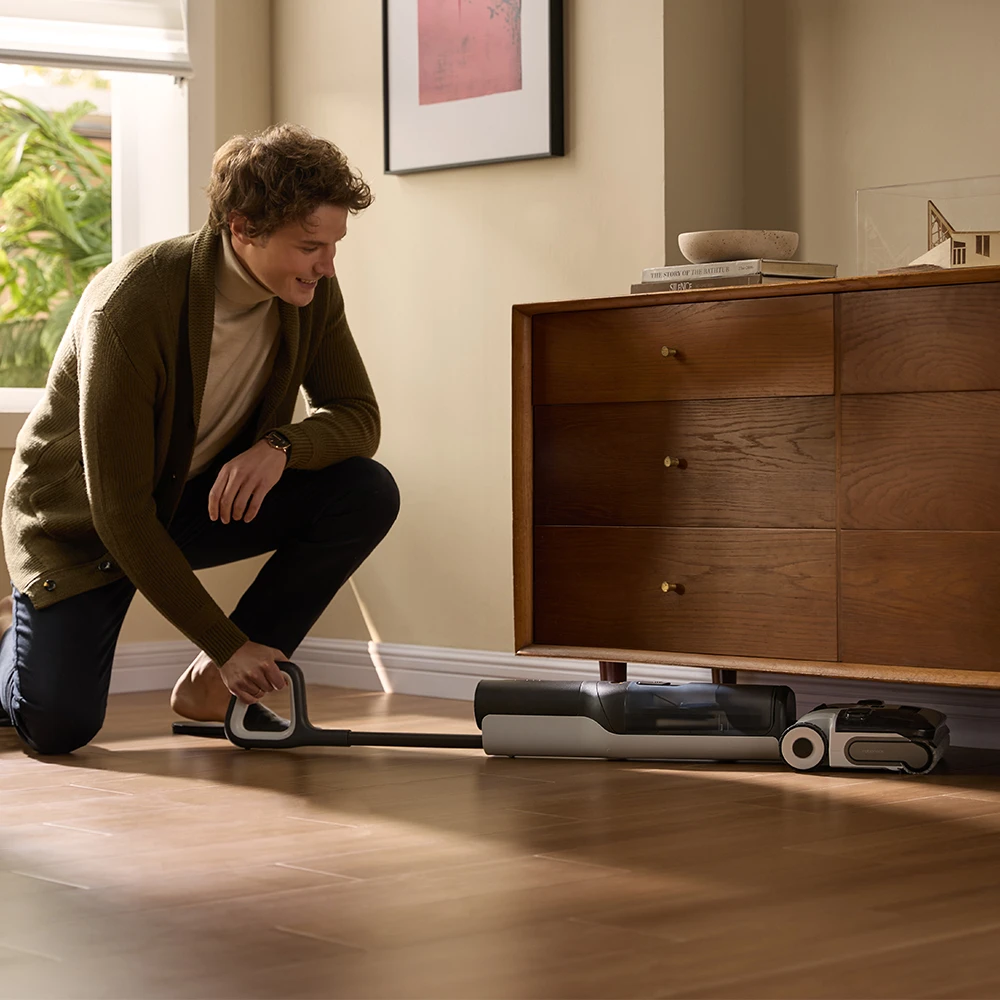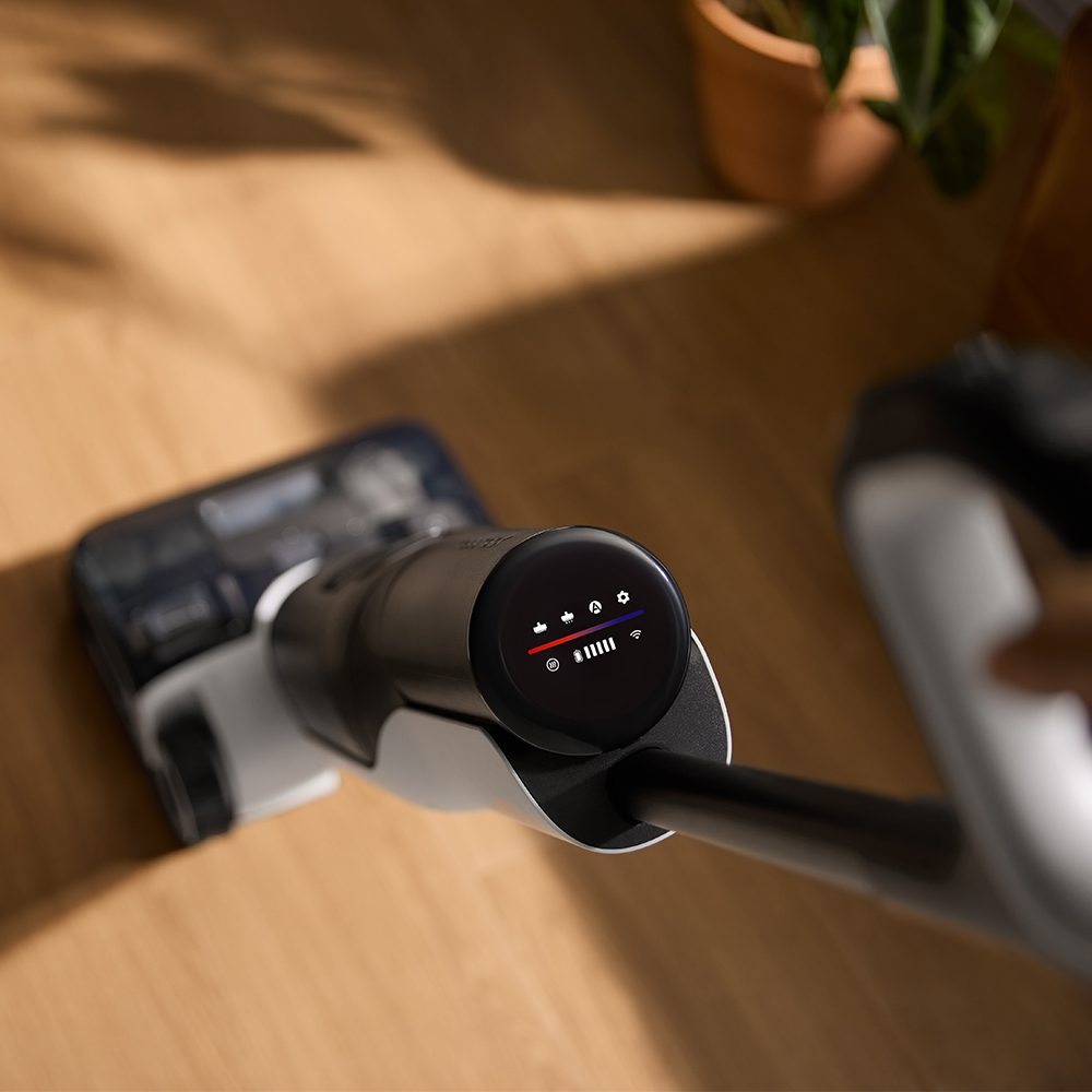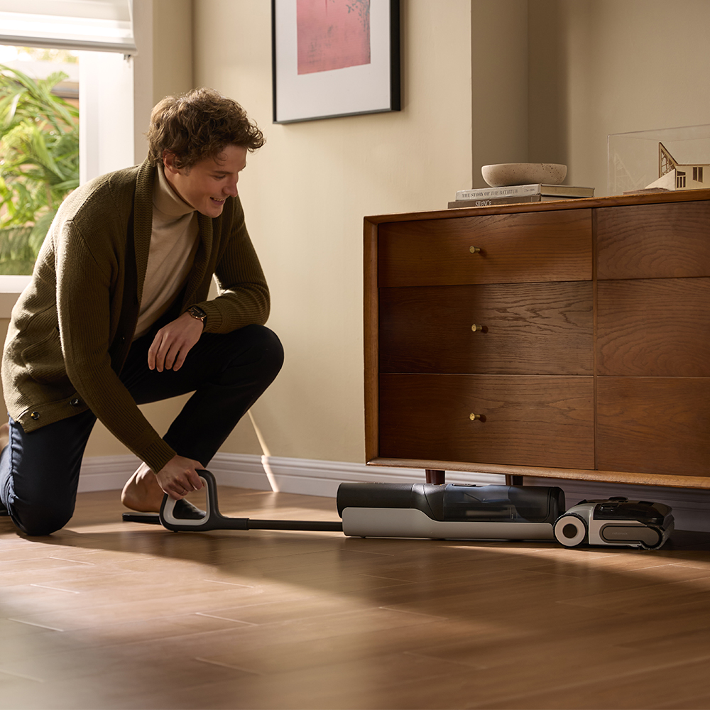 Das flache 12.5 cm Design des FlatReach 2.0-Systems garantiert, dass der volle Saugdruck auch bei 0° erhalten bleibt und selbst enge Bereiche unter Möbeln erreicht werden. Unterstützt wird diese Eigenschaft durch einen niedrigen Schwerpunkt und ein 70°-Schwenkdesign, die ein sanftes Gleiten um Hindernisse ermöglichen. Ergänzt wird die Navigation durch die KI-verbesserte SlideTech 2.0, bei der zwei bürstenlose Motoren die einzelnen Räder steuern und ultrasanfte Manövrierfähigkeit mit extrem kurzen Reaktionszeiten bieten.