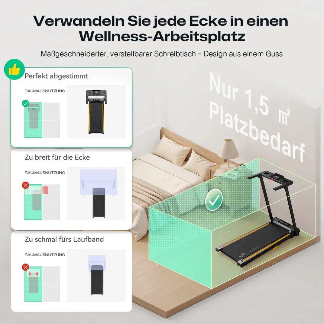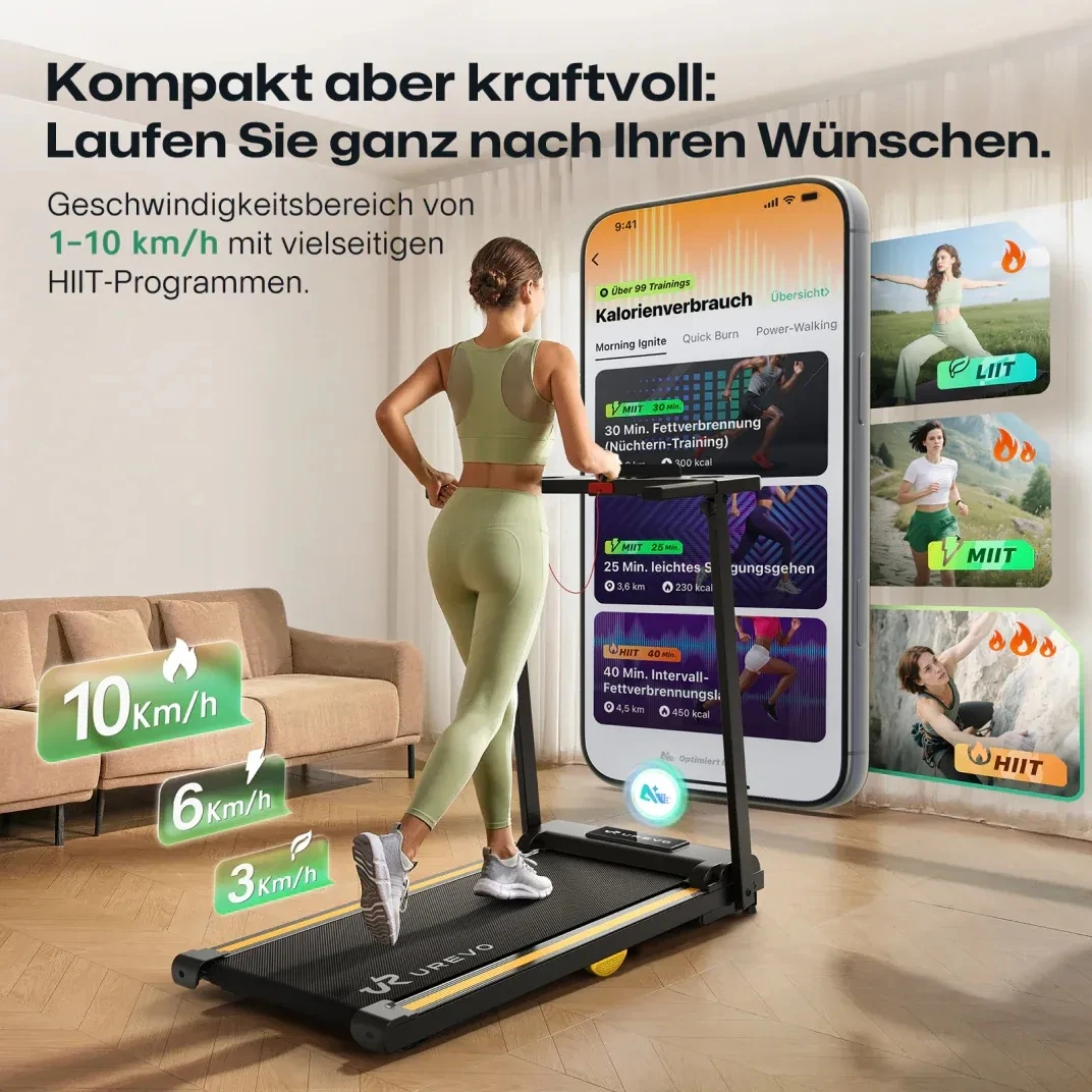 Der UREVO Foldi Mini 2 präsentiert sich als kompaktes und leistungsstarkes Laufband, das für den flexiblen Einsatz im privaten Trainingsbereich konzipiert wurde. Durch die Kombination aus moderner Antriebstechnologie, intelligenten Trainingsfunktionen und platzsparendem Design entsteht eine durchdachte Lösung für ein effizientes und komfortables Lauftraining in den eigenen vier Wänden.
