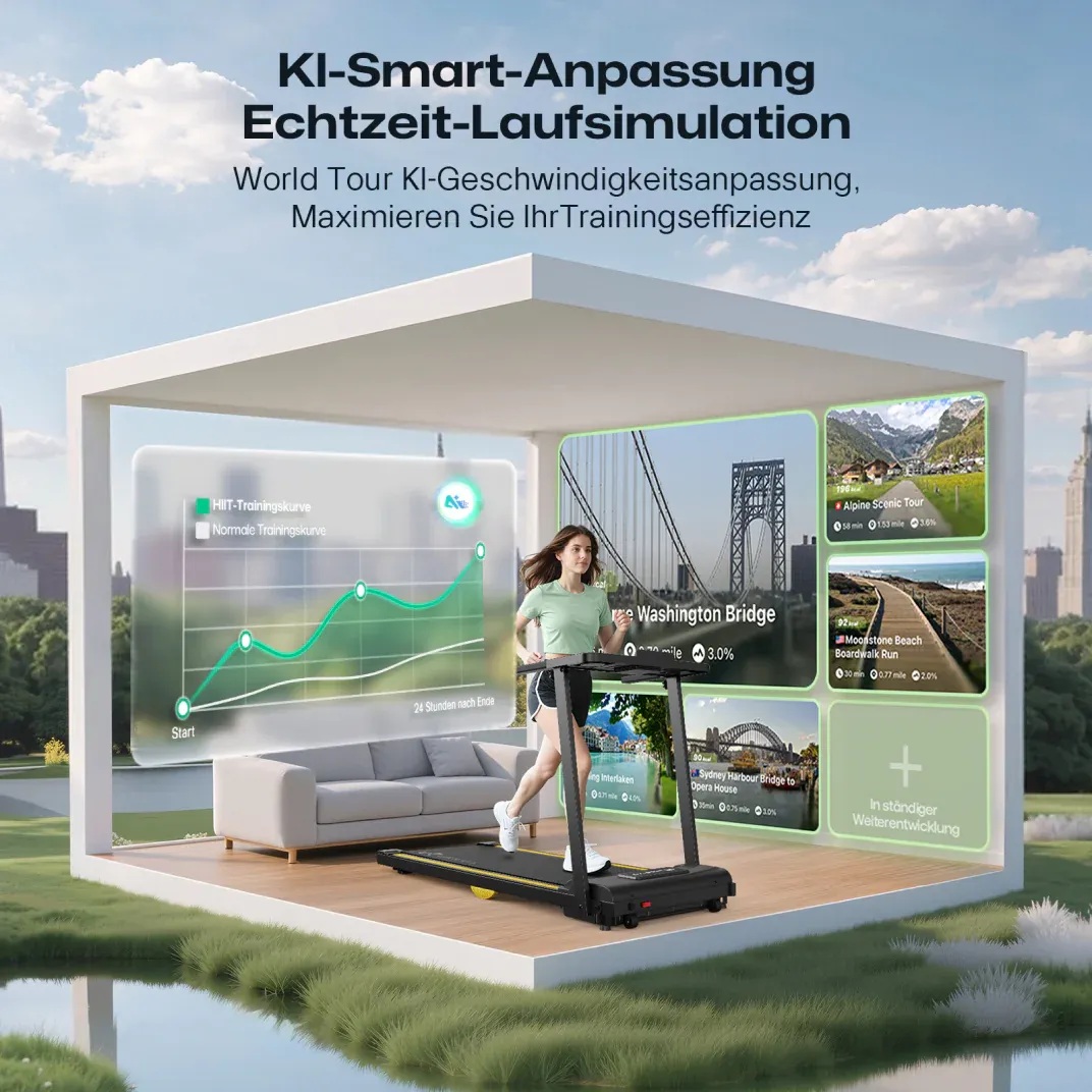 Die integrierte AI Reality Smart Control mit Live Map-Modus eröffnet eine neue Dimension der Trainingsgestaltung. Individuell abgestimmte Trainingsprogramme sowie eine virtuelle Streckenführung sorgen für abwechslungsreiche und personalisierte Workouts. Ergänzend stehen verschiedene Trainingsmodi wie HIIT, MIIT und LIIT zur Verfügung, die eine gezielte Anpassung an unterschiedliche Fitnessziele ermöglichen.