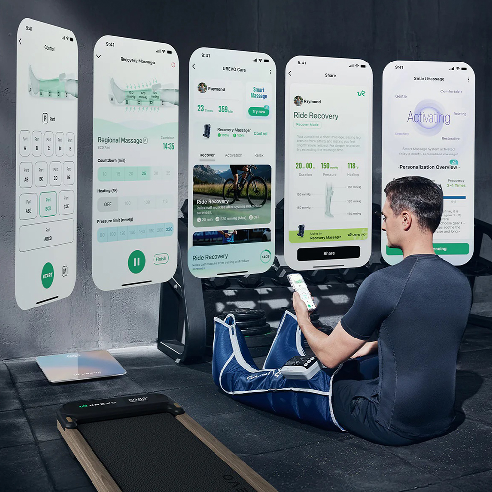 Vor jeder Anwendung analysiert die UREVO App mit komplexen Algorithmen den aktuellen Zustand der Beinmuskulatur, ermittelt Schmerzpunkte und Muskelermüdung und schlägt automatisch optimierte Massageparameter vor. Diese personalisierten Empfehlungen gewährleisten eine zielgerichtete und effektive Behandlung.
