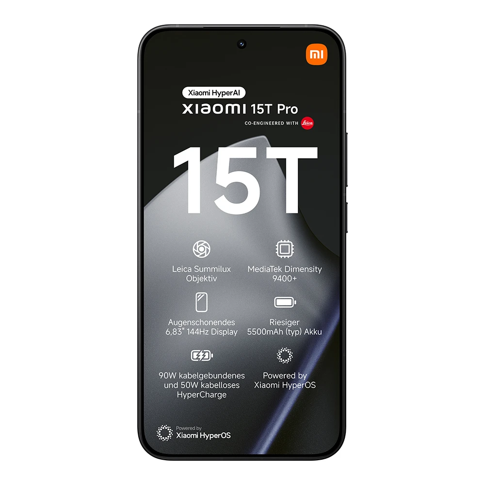 | Lieferumfang: | 1x Xiaomi 15T Pro, 1x USB-C-Kabel, 1x SIM-Auswurftool, 1x Schutzhülle, 1x Kurzanleitung und Garantiekarte, 1x Sicherheitshinweise |