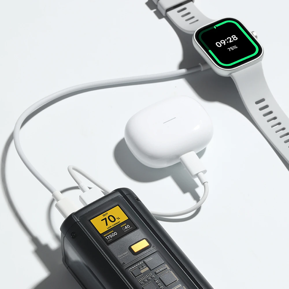 Neun Schichten intelligenter Schutzmechanismen gewährleisten einen zuverlässigen Betrieb und schützen vor Überspannung, Überhitzung, Überstrom, Unterspannung, Fremdkörpern sowie statischer Elektrizität (ESD). Hochpräzise Temperaturüberwachung und fortschrittliche IC-Chips optimieren die Energieumwandlung und garantieren eine stabile Entladung – für eine hohe Langlebigkeit und Betriebssicherheit der Power Bank.