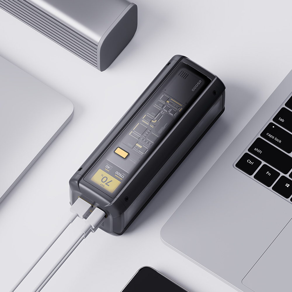 Ausgestattet mit fünf hochwertigen 5.000mAh-Zellen (insgesamt 90.8Wh) erfüllt die Power Bank internationale Luftfahrtstandards und ermöglicht eine problemlose Mitnahme im Flugzeug. Mit einem leistungsstarken Multi-Port-Ausgang von 212W können bis zu drei Geräte gleichzeitig hochkraftgeladen werden. Ein einzelner PD 3.1-Port liefert dabei bis zu 140W und unterstützt zusätzlich Xiaomi-Smartphones mit einer Ladeleistung von bis zu 120W. Dank der USB-C zwei‑Wege-Schnellladung reduziert sich zudem die Eigenladezeit auf bis zu 2.5 Stunden, was eine effiziente und zeitnahe Energieversorgung garantiert.