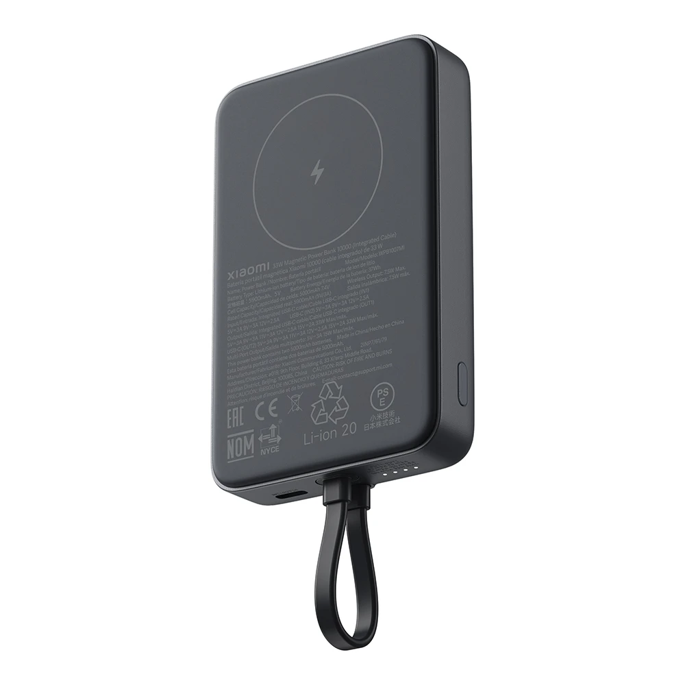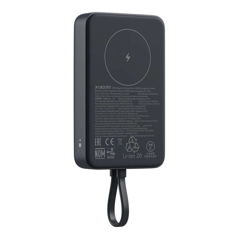 Die Xiaomi 33W Magnetische Power Bank 10000mAh mit integriertem Kabel vereint hohe Kapazität und multifunktionale Ladeoptionen in einem schlanken Gehäuse. Ausgestattet mit zwei 5000 mAh‑Zellen (entspricht 10000 mAh bei 3.7 V bzw. 37 Wh) erfüllt sie die Richtlinien für Luftfahrtgeräte und begleitet Nutzer auf Geschäftsreisen ebenso zuverlässig wie im Alltag.