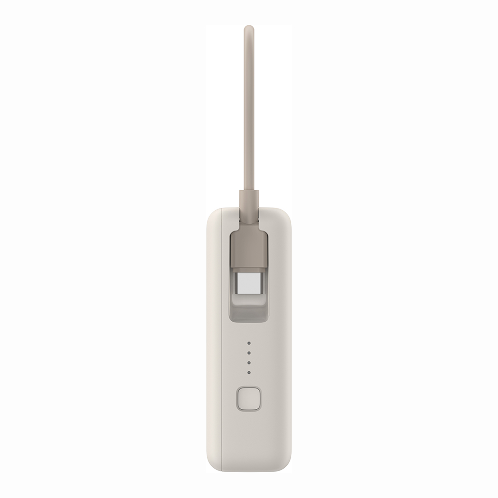 Die Power Bank bietet drei Ausgänge: ein USB-C-Anschluss, ein integriertes USB-C-Kabel und ein USB-A-Anschluss. Diese ermöglichen das gleichzeitige Laden von bis zu drei Geräten, ohne Kompromisse bei der Leistung einzugehen. Das integrierte Kabel sorgt für zusätzlichen Komfort und macht zusätzliche Kabel überflüssig.