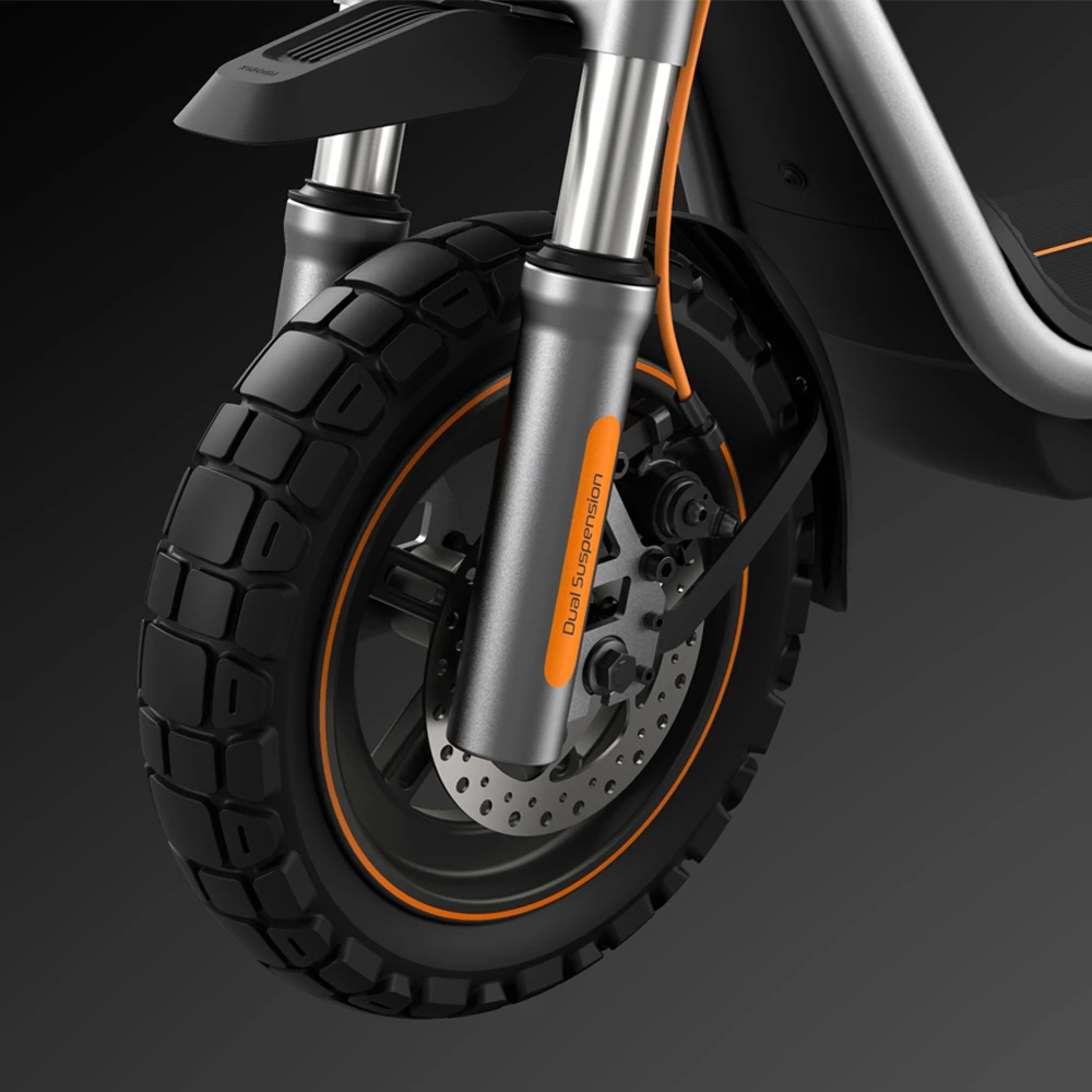 Ein präzise abgestimmtes Federungssystem mit vorderer und hinterer Federung sorgt für effektive Stossdämpfung. Die Frontfederung mit erweitertem Federweg sowie das zentrale hintere Federungselement reduzieren Erschütterungen bei Hindernissen wie Stufen oder unebenem Untergrund deutlich. Die mehrstufige Auslegung der vorderen Federn gewährleistet Stabilität in Kurven und ein angenehmes Fahrgefühl auch bei wechselnden Bodenverhältnissen.