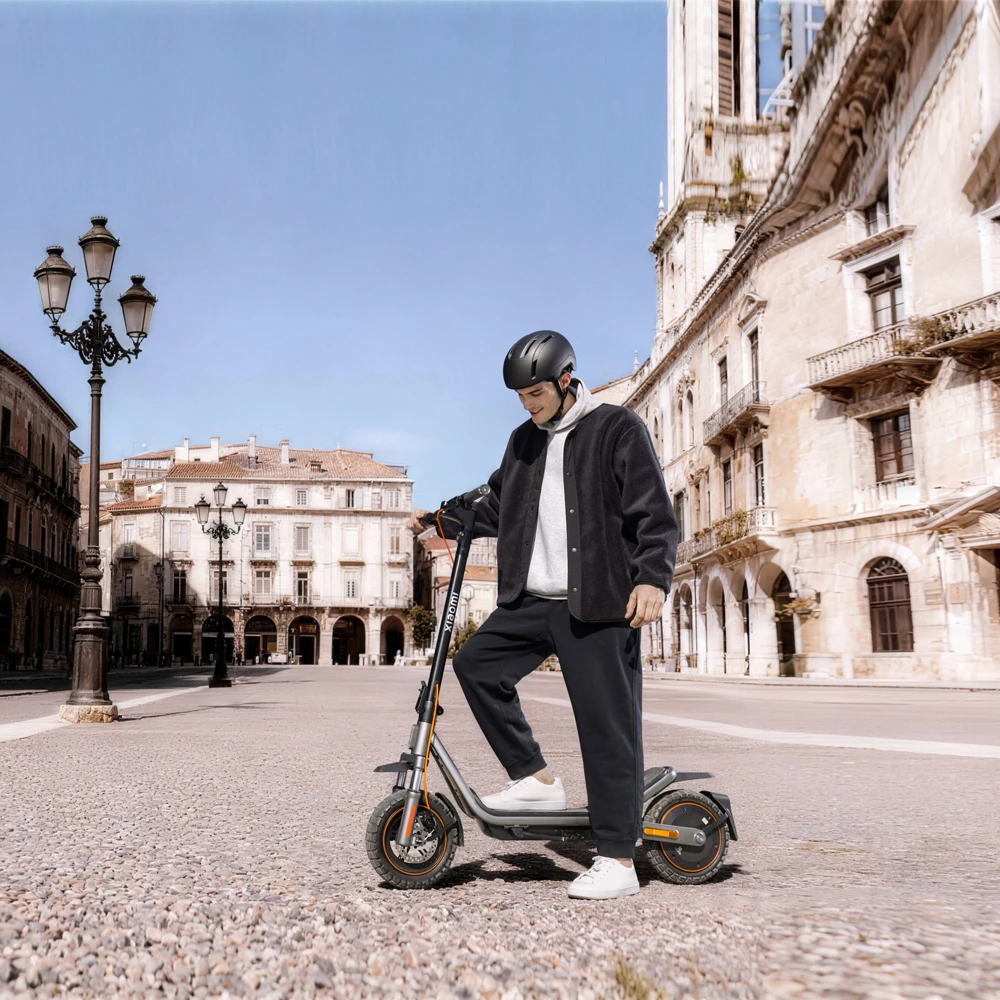 Ausgestattet mit 12-Zoll-All-Terrain-Reifen bietet der Xiaomi E-Scooter 6 Pro eine verbesserte Traktion auf unterschiedlichsten Untergründen. Das profilierte Reifendesign reduziert das Risiko des Wegrutschens auf unbefestigten Flächen und sorgt für ein kontrolliertes Fahrverhalten. Gleichzeitig trägt die widerstandsfähige Gummimischung zu einer erhöhten Langlebigkeit bei und unterstützt eine spürbar verbesserte Beschleunigung sowie eine erhöhte Bodenhaftung.