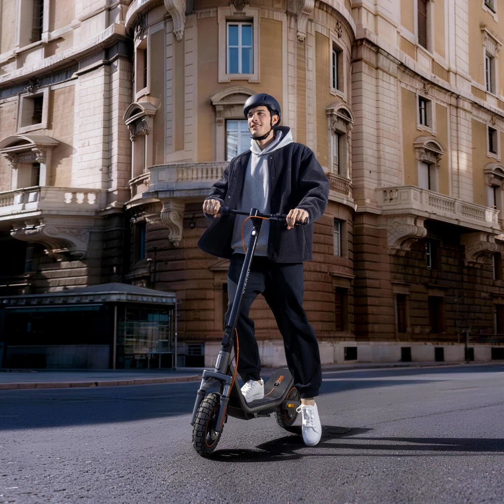 Der integrierte bürstenlose Hinterradmotor erreicht eine maximale Spitzenleistung von bis zu 1000 Watt und stellt eine gleichmässige sowie kraftvolle Beschleunigung bereit. Steigungen mit einer Neigung von bis zu 22 Prozent lassen sich zuverlässig bewältigen, wodurch der E-Scooter auch in hügeligen Regionen souverän einsetzbar bleibt. Die Nenndauerleistung von 400 Watt unterstützt einen effizienten und kontrollierten Betrieb im täglichen Einsatz.