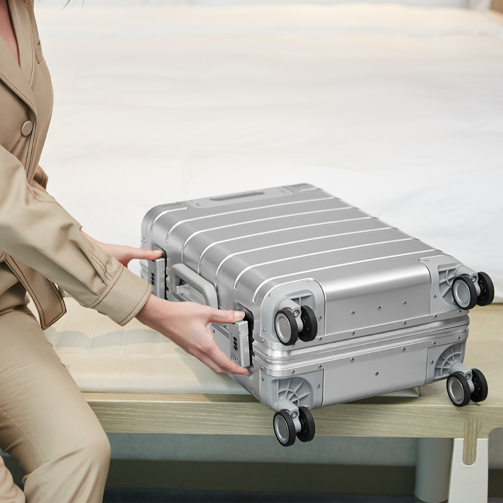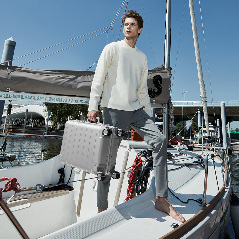 Der Xiaomi Metall-Handgepäckkoffer 20 Zoll verbindet schlankes Design mit bemerkenswerter Leichtigkeit. Sein Gehäuse aus einer speziell für die Luftfahrt entwickelten Aluminium-Magnesium-Legierung verleiht dem Koffer ein edles Äusseres und hält das Gesamtgewicht gering. Durch die horizontal gestalteten Streifen und abgerundeten Ecken entsteht eine moderne Anmutung, die dem Reisenden stilvolle Präsenz verleiht, ohne auf Strapazierfähigkeit zu verzichten.