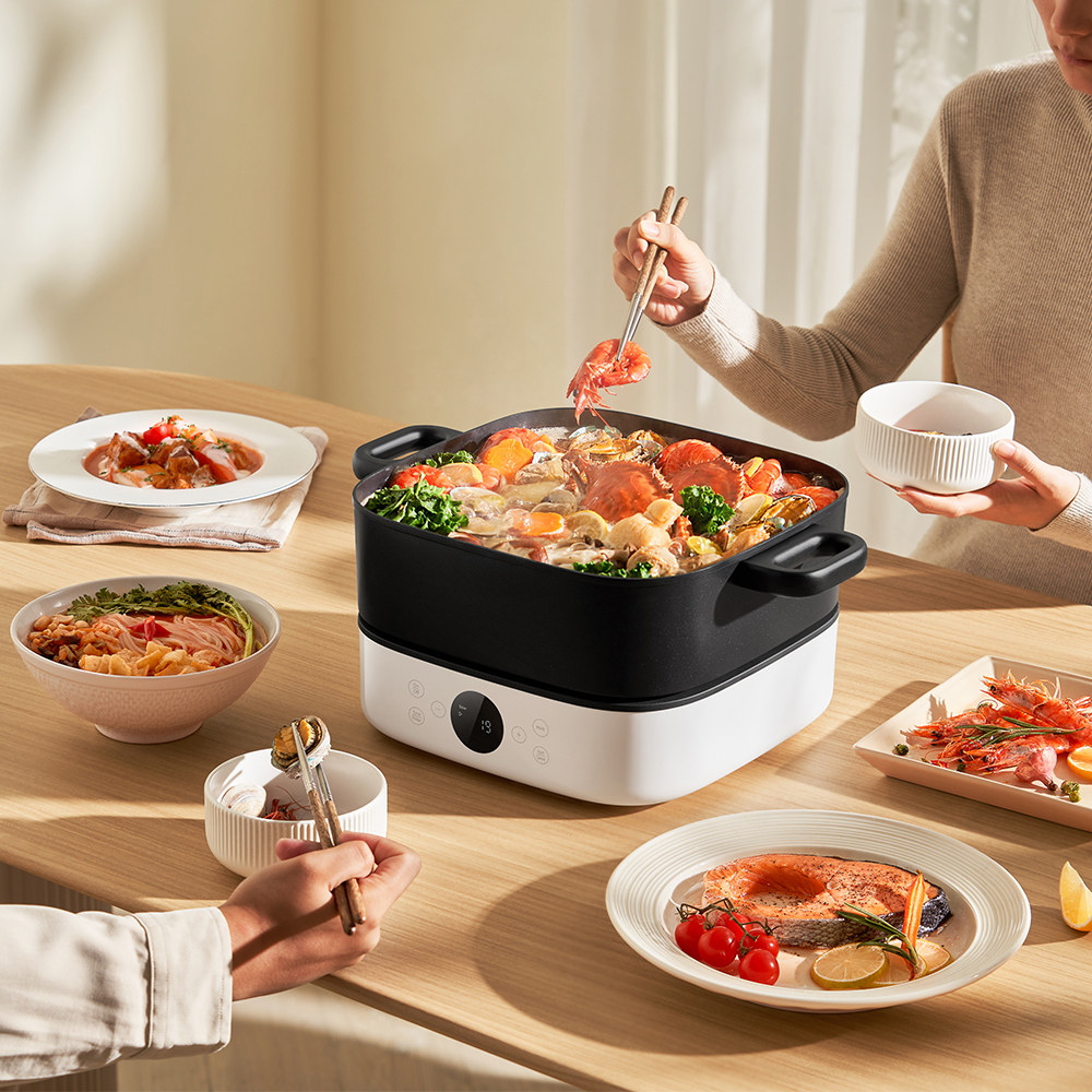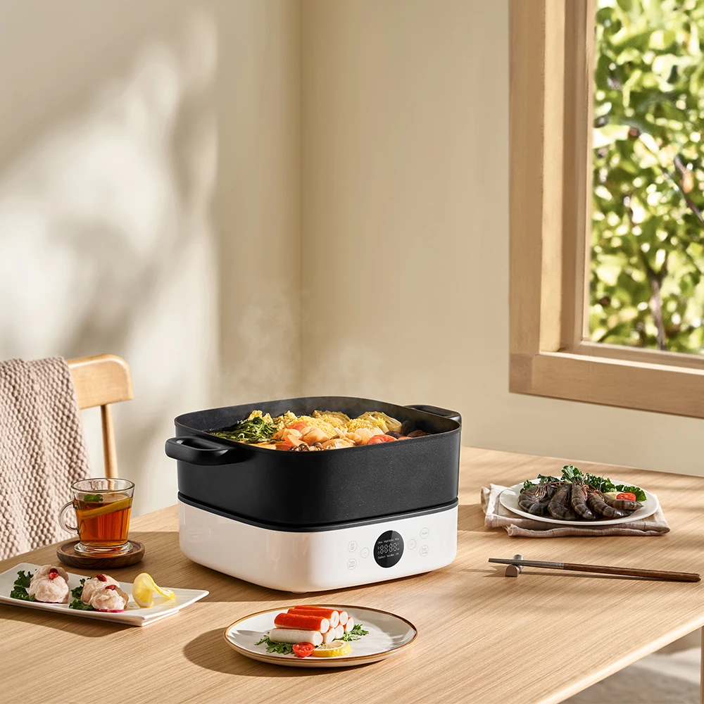 Ob klare Brühen, herzhafte Eintöpfe oder scharf-explosive Hotpot-Zutaten – der Kocher meistert alle Varianten. Sein grosszügiger, quadratischer Topf bietet ausreichend Raum für Zutatenkombinationen und ermöglicht das gleichzeitige Garen mehrerer Speisen. Dank der gleichmässigen Hitzeverteilung entfalten Aromen ihr volles Potential, sodass jeder Bissen intensiv und ausgewogen schmeckt.