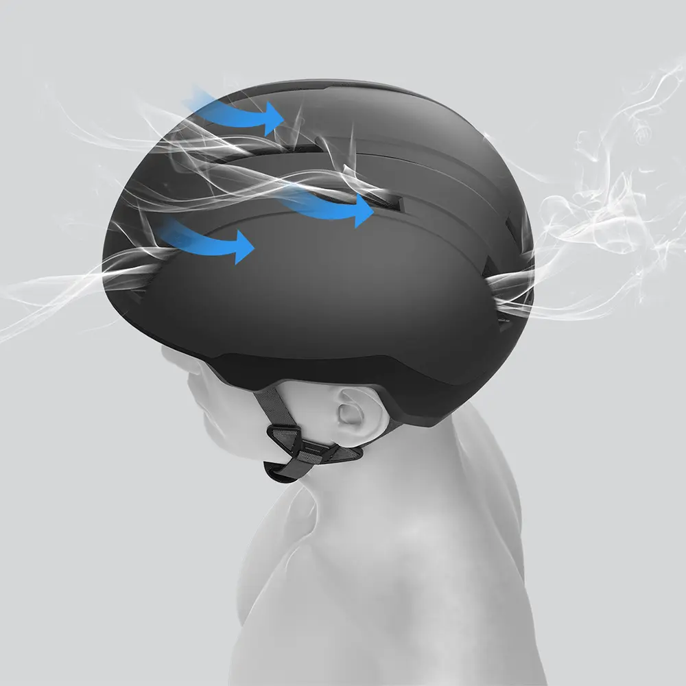 Der Helm basiert auf einer dualen Schalenkonstruktion: Eine äussere PC-Hülle sorgt für hohe Schlagfestigkeit, während die innere EPS-Schaumstoffschicht Stösse effektiv absorbiert. Durch das integrierte Pressverfahren entsteht eine widerstandsfähige Einheit, die bei einem Gewicht von nur 280 Gramm (±15 Gramm) den Druck auf den Kopf reduziert und gleichzeitig eine zuverlässige Barriere gegen Aufprallkräfte bildet.