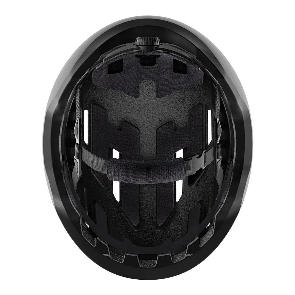 Die flexible Passform deckt einen Kopfumfang von 55 bis 59 Zentimetern ab und lässt sich über einen Einstellknopf millimetergenau regulieren. Ein weiches Innenfutter aus wärmegepresstem Birdseye-Gewebe schmiegt sich sanft an die Kopfkontur, während Polyesterbänder und ein Schnellverschluss für sicheren Halt sorgen. Das Material des Innenpolsters ist hautfreundlich und bietet zugleich eine stossdämpfende Polsterung.
