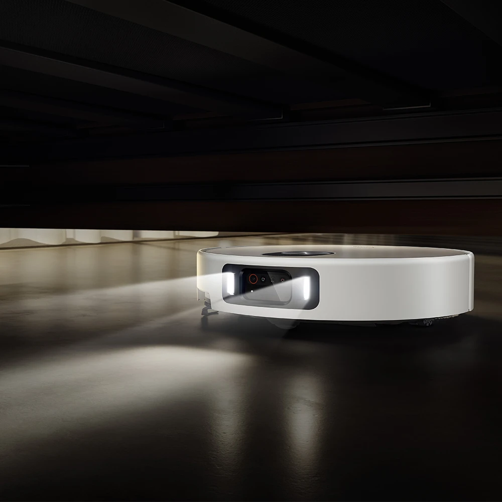 Der Roboter ist mit einem AI-Triple-Kamera-System ausgestattet, bestehend aus einer RGB-Kamera, zwei Infrarotkameras und einem 3D-Infrarot-Punktprojektor. Damit erkennt das Gerät in Echtzeit über 200 verschiedene Objekte, etwa Kabel, Socken oder Pflanzenranken, und passt seine Fahrroute entsprechend an. Für den Betrieb bei schwachem Licht sorgen zwei LED-Nachtsichtleuchten, die bei Bedarf automatisch aktiviert werden. Der 360°-Laser-Scan erstellt eine präzise Karte der Wohnumgebung, die das Planungssystem für optimierte Reinigungsrouten nutzt.