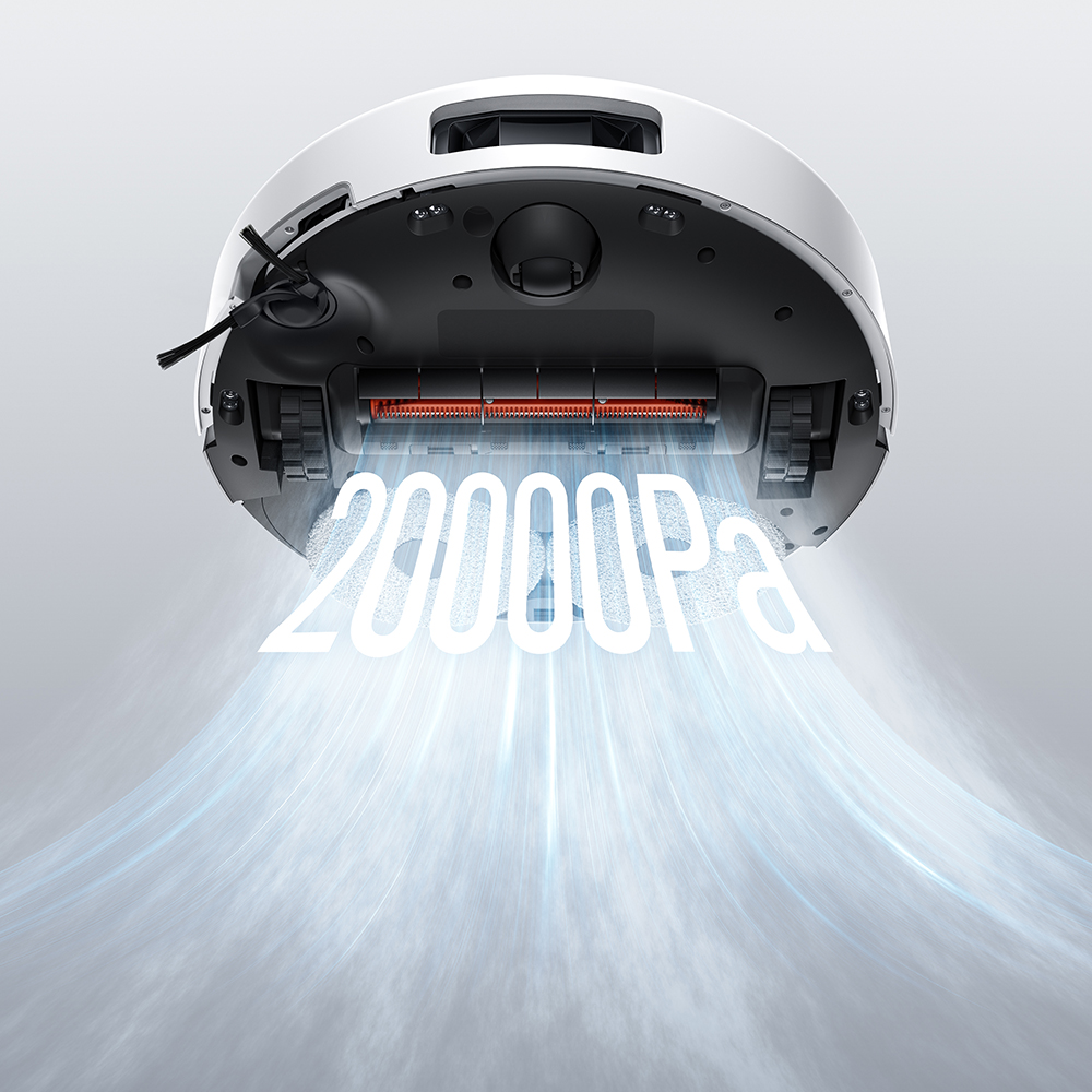 Der Saugroboter 5 erreicht eine maximale Luftleistung von 20000 Pa, wodurch hartnäckiger Schmutz, Staub, Partikel, Haare und Ablagerungen zuverlässig aufgenommen werden. Die Hauptbürste ist mit einem integrierten Trimmer versehen, der Haare direkt bei der Aufnahme kürzt, um Verfilzungen zu reduzieren. Die Seitenbürste ist gross dimensioniert und arbeitet mit Zentrifugalkraft, um Schmutz entlang von Wänden zu lösen. Durch die Dual-Extension-Technologie kann sowohl die Seitenbürste als auch das Mop-Modul bis auf 0 mm heranreichen, wodurch Kanten und Ecken besonders gründlich gereinigt werden.