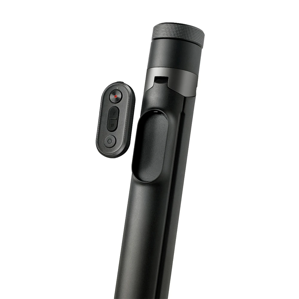 Zur Bedienung gehört eine multifunktionale Bluetooth-Fernbedienung, die magnetisch am Griff befestigt werden kann. Diese erlaubt das Auslösen von Fotos und Videos aus der Entfernung und unterstützt über Tasten das Wechseln zwischen Foto- und Videomodus. Durch die drahtlose Verbindung über Bluetooth lässt sich der Selfie Stick flexibel einsetzen, ohne direkt am Smartphone stehen zu müssen.