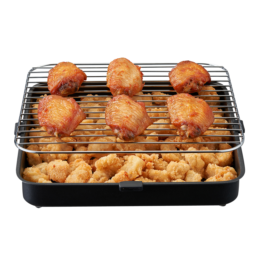 Die Entfettungsfunktion ermöglicht eine effektive Filterung von überschüssigem Fett und Öl, wodurch gesunde, fettarme und authentische Aromen erhalten bleiben. Selbst im knusprigen Grillmodus kann die Fett- und Ölreduktion um bis zu 88.3% erreicht werden.