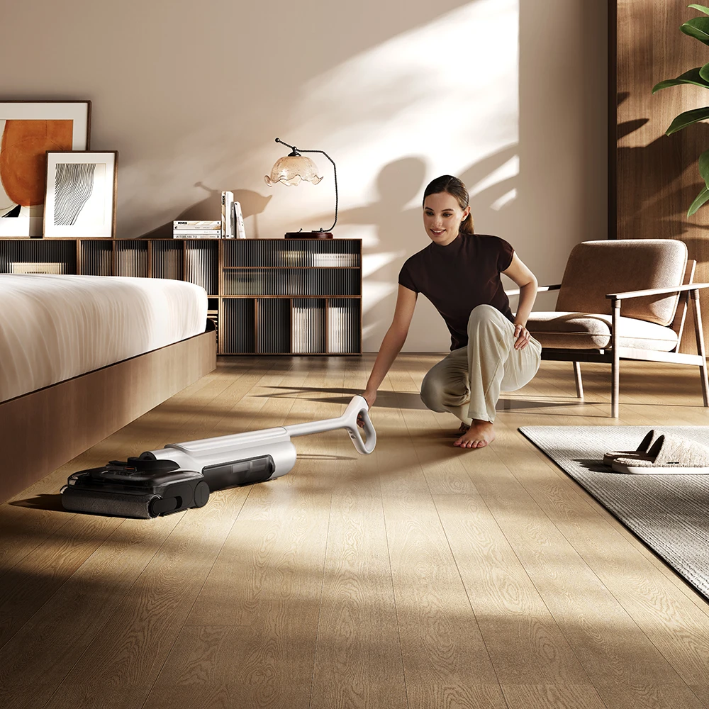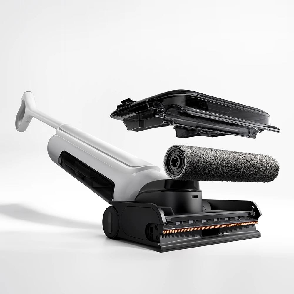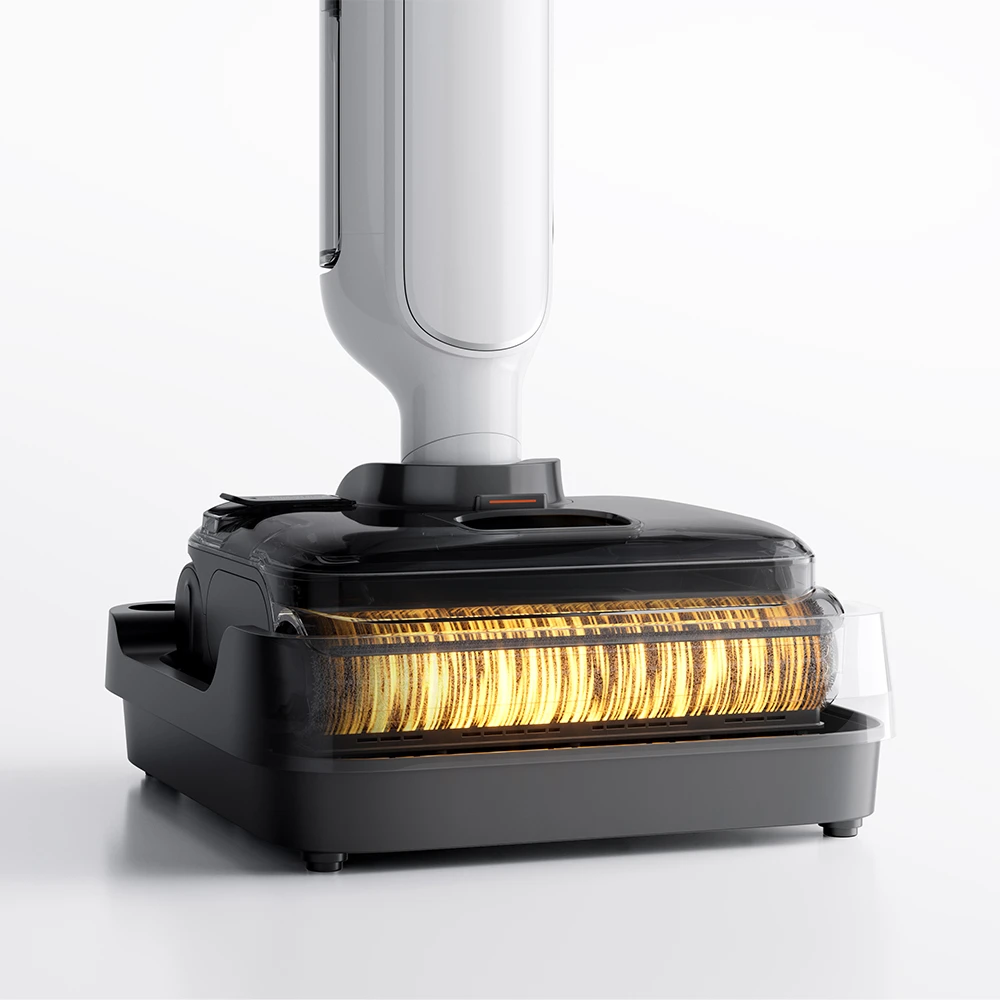 Der Truclean W30 Pro zeichnet sich durch eine hohe Saugleistung von bis zu 18000 Pa aus, die in Verbindung mit einer rotierenden Bürste, die bis zu 450 Umdrehungen pro Minute erreicht, für gründliches Entfernen von Schmutz und Partikeln sorgt. Die Kombination von Saugen, Wischen und Bürstenreinigung in einem Arbeitsgang führt zu einer tiefgehenden Entfernung von trockenen und nassen Verschmutzungen auf harten Böden. Das Gerät arbeitet mit einem fortschrittlichen V-förmigen Sauganschluss und einem leistungsfähigen Motor, die gemeinsam schwerere Verunreinigungen effektiv erfassen und ein Verheddern von langen Haaren reduzieren.