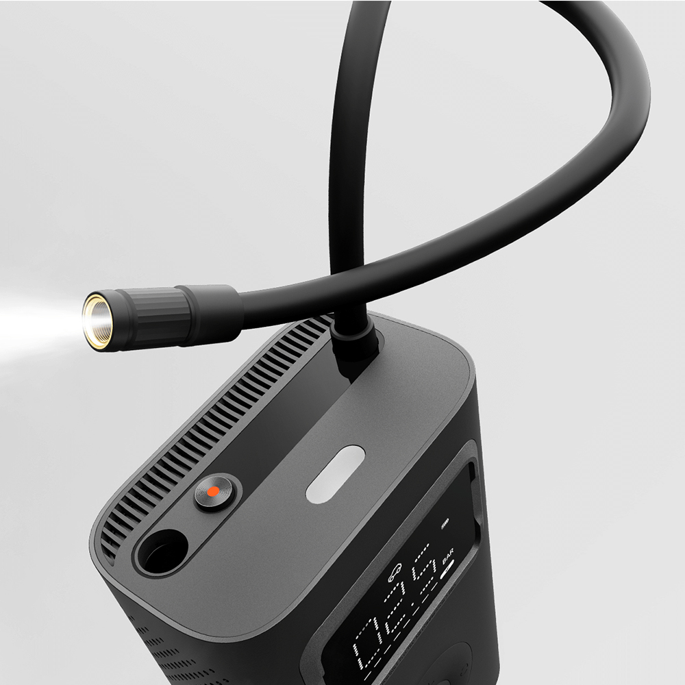 Zusätzlich ist der Luftkompressor mit einer weissen Lampe ausgestattet, die grosse Flächen effektiv ausleuchtet. Für den Notfall bietet er zudem einen SOS-Blink- und Rotlichtmodus, um auf sich aufmerksam zu machen und bei Bedarf als Warnsignal zu dienen.